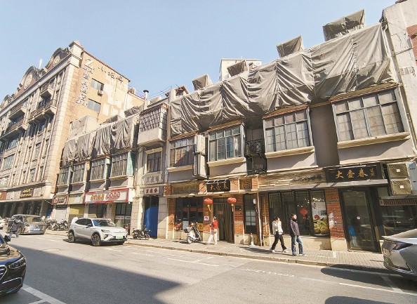 今天上午,云南路沿街不少建筑已被围裹,老字号店铺有的还在营业,有的已搬离 本报记者 周馨 摄