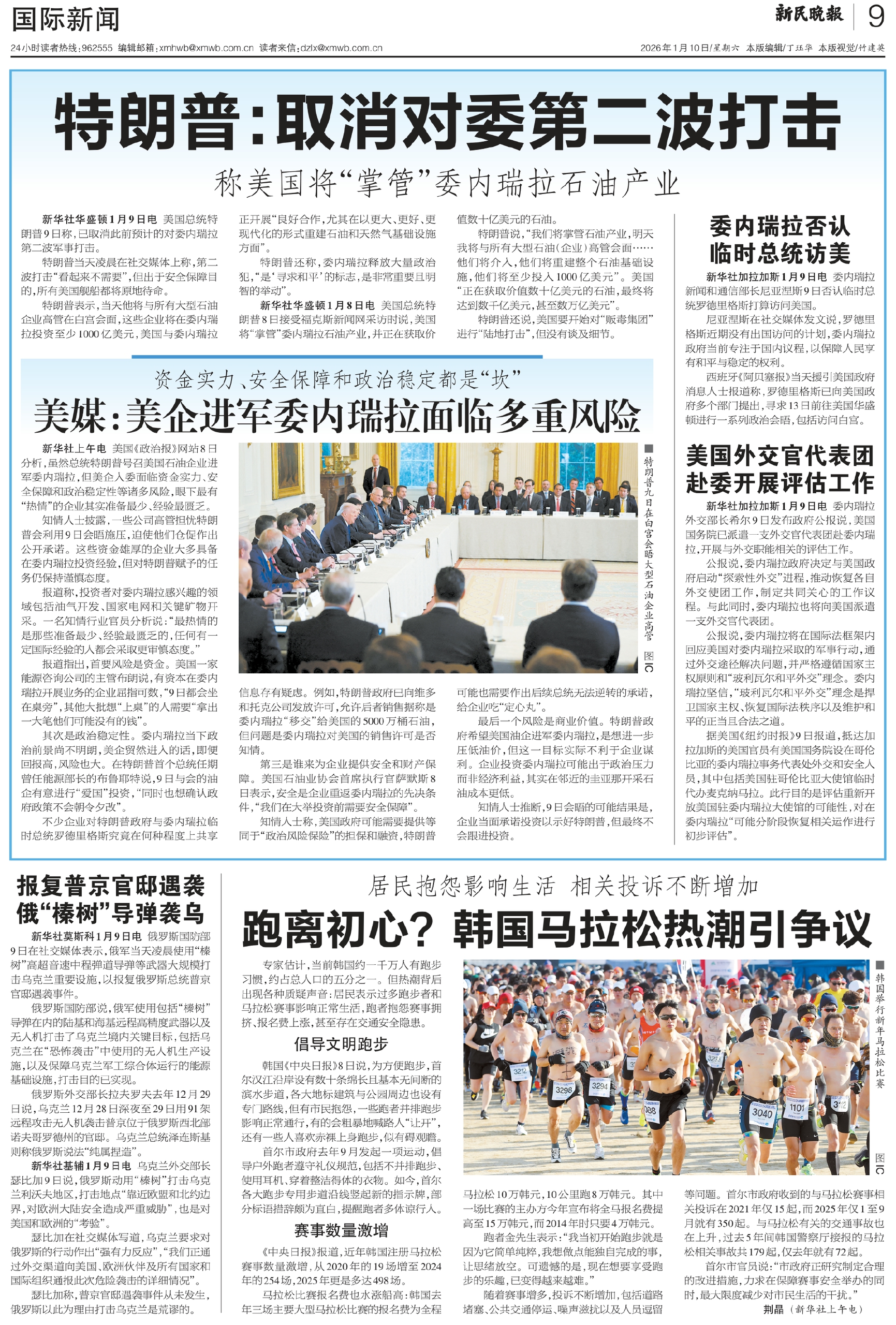 新华社华盛顿1月9日电 美国总统特朗普9日称,已取消此前预计的对委内瑞拉第二波军事打击。