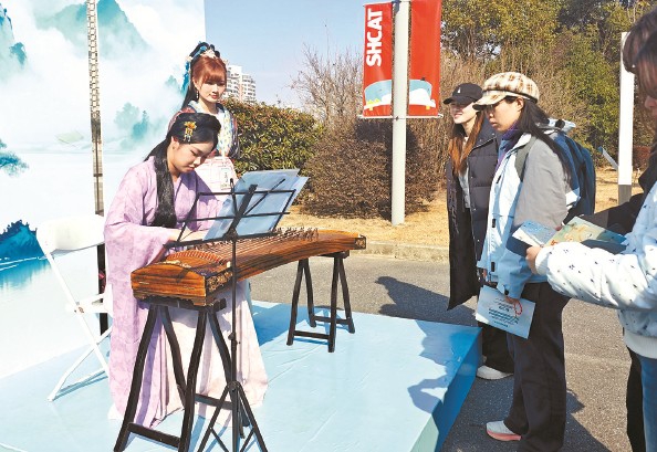游园市民玩起了猜歌名游戏 本报记者 陶磊 摄