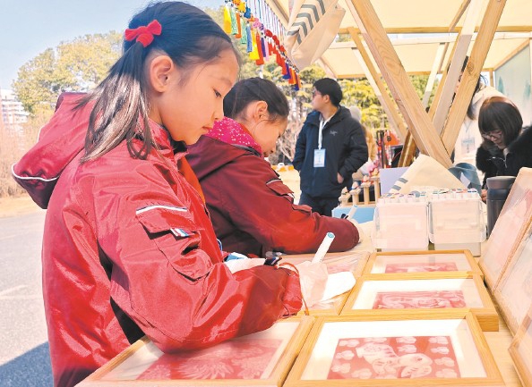 舞狮、书法、投壶、射箭、九连环、猜谜、飞花令……剧场外,传统文化游园市集同步开放。24个主题摊位分为互动体验与静态展示两大板块,吸引众多青少年参与。