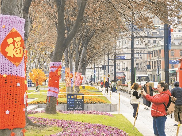 最近,途经外滩中山东一路的市民游客发现,沿街的行道树都穿上了色彩斑斓的“新年毛衣”,绒线装上还贴有大红的福字和吉祥挂件,这是黄浦区社区阿姨和园林职工为树木量身定制的新装,充满了新年的喜庆氛围,也成为一道灵动的风景。 杨建正 摄影报道