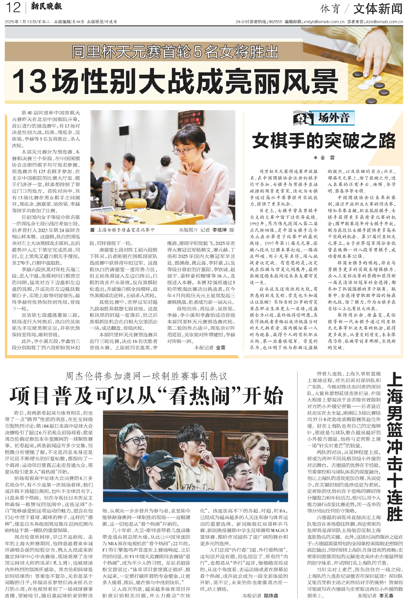 第40届同里杯中国围棋天元赛昨天在北京中国棋院开幕,首日进行的预选赛中,有13场对决是性别大战,结果,周泓余、吴依铭、李赫等5名女将胜出,杀入次轮。
