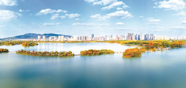 在蠡湖景区渤公岛段,各类沉水植物随波摇曳构成了茂密的“水下森林”,如同湖底的“生态肺叶”,净化水质、稳固底泥。岸边,生态缓冲带与人工湿地连绵展开,像一条条“绿色丝带”,温柔过滤着入湖径流。“随着生态修复的推进,目前蠡湖水体透明度增加了,部分区域的透明度可达2米以上。水质也有了明显改善,水质全年能稳定在Ⅲ类。”韩翠敏说。