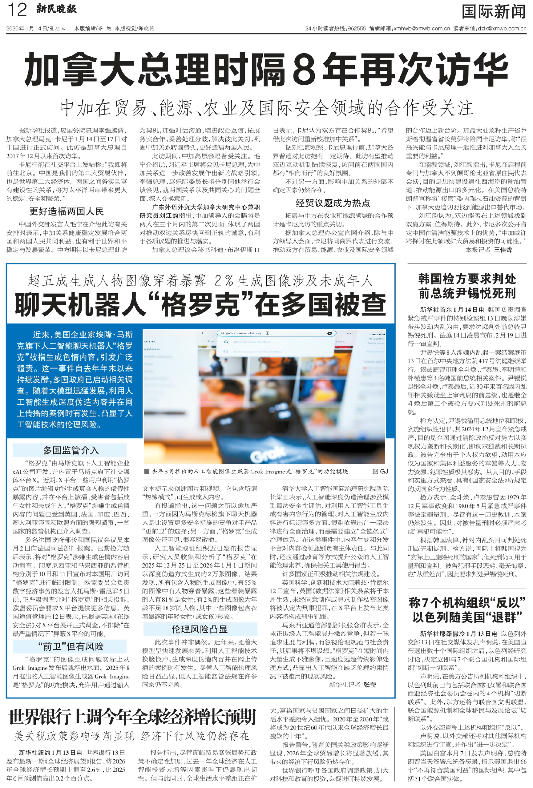 据新华社报道,应国务院总理李强邀请,加拿大总理马克·卡尼于1月14日至17日对中国进行正式访问。此访是加拿大总理自2017年12月以来首次访华。