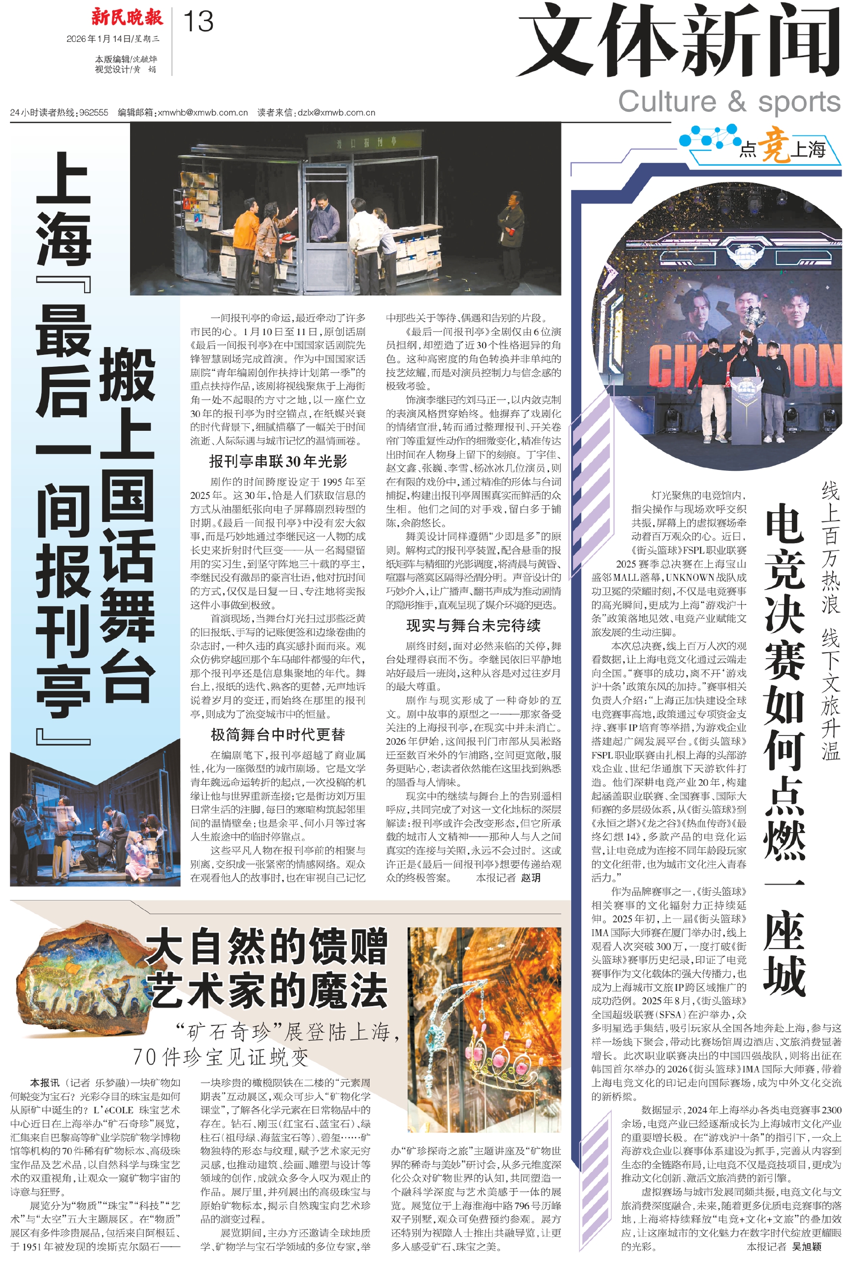 大自然的馈赠 艺术家的魔法 上海“最后一间报刊亭”搬上国话舞台 电竞决赛如何点燃一座城