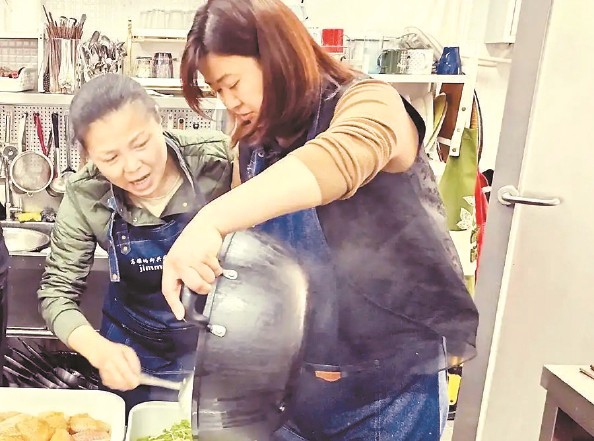高雅(右)和居民方阿姨忙着备菜 受访者供图