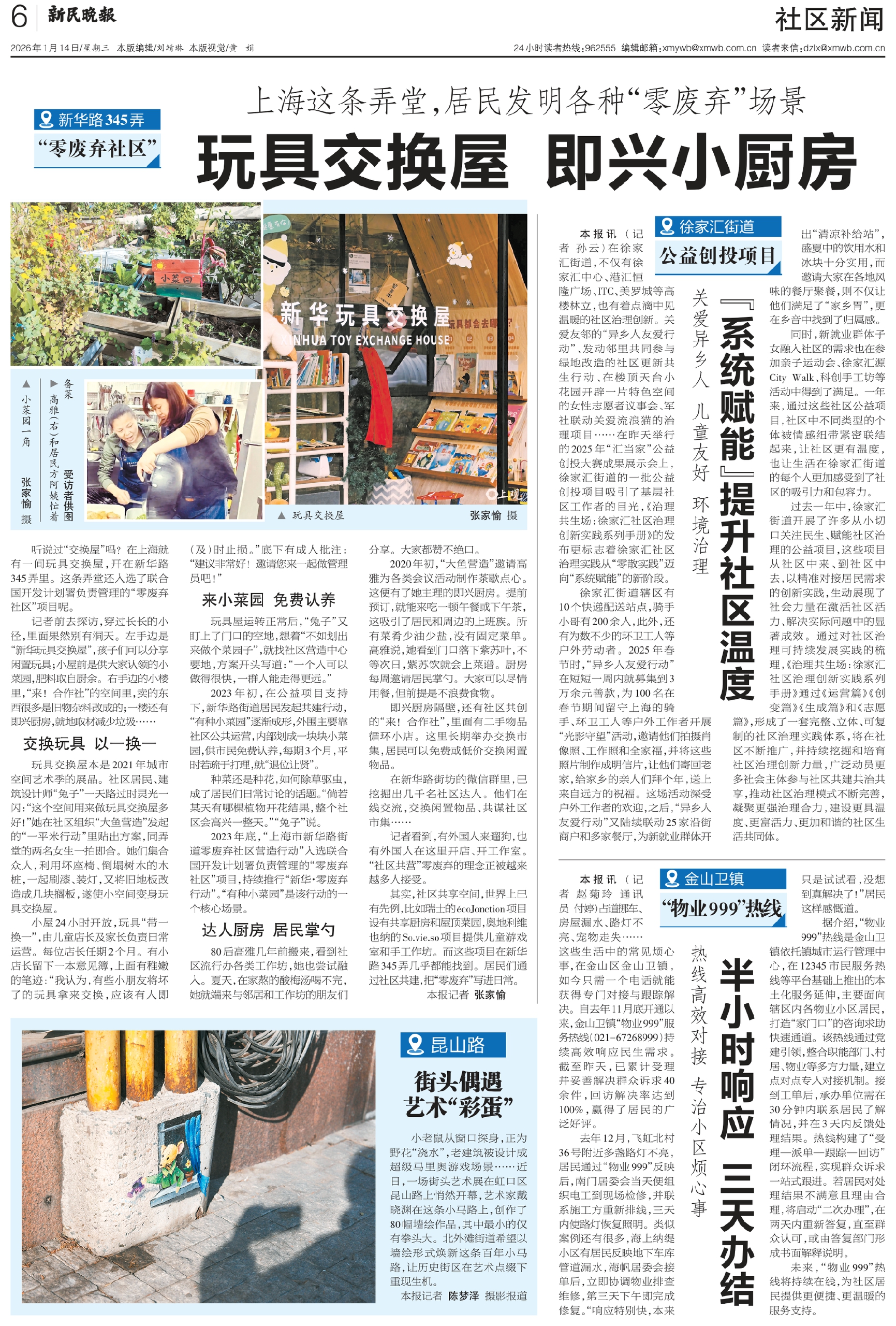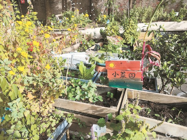 记者前去探访,穿过长长的小径,里面果然别有洞天。左手边是“新华玩具交换屋”,孩子们可以分享闲置玩具;小屋前是供大家认领的小菜园,肥料取自厨余。右手边的小楼里,“来!合作社”的空间里,卖的东西很多是旧物杂料改成的;一楼还有即兴厨房,就地取材减少垃圾……