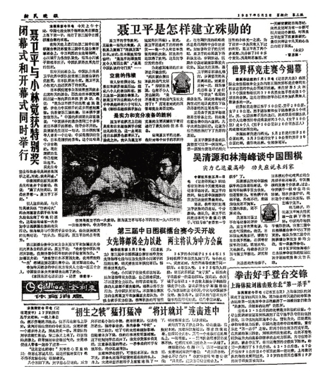 1987年,本报报道聂卫平赢得中日围棋擂台赛冠军