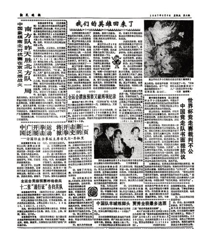 1987年5月6日,本报报道聂卫平从中日围棋擂台赛凯旋