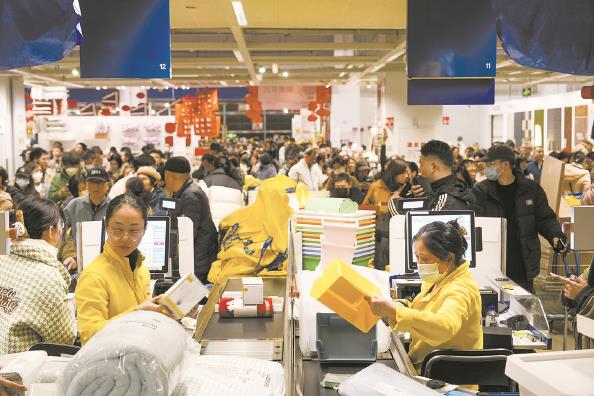 宜家宝山商场昨天开启清仓特惠活动,大量顾客前来抢购优惠商品,停车、就餐以及结账时间都超过一小时 本报记者 陈梦泽 摄