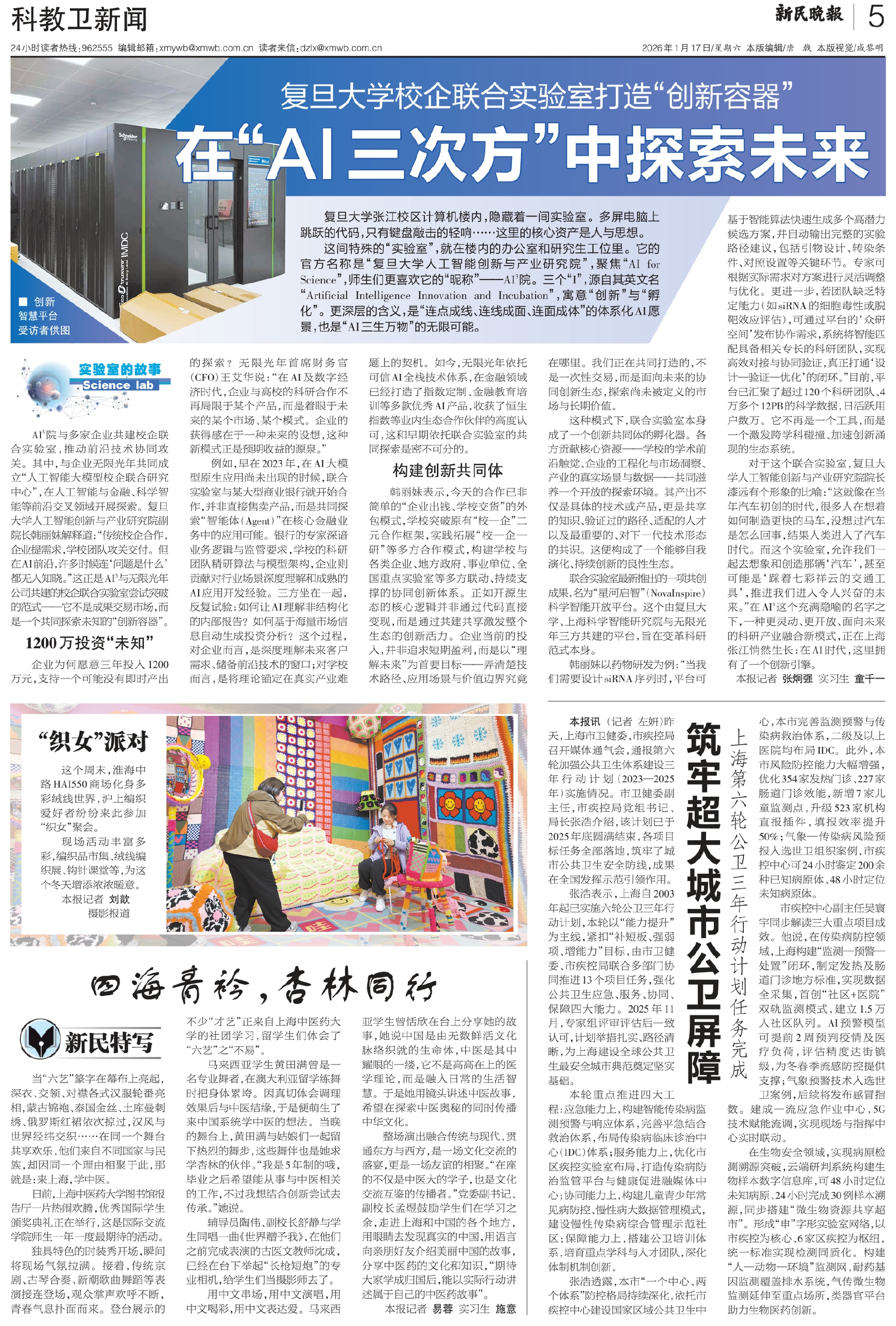 对于这个联合实验室,复旦大学人工智能创新与产业研究院院长漆远有个形象的比喻:“这就像在当年汽车初创的时代,很多人在想着如何制造更快的马车,没想过汽车是怎么回事,结果人类进入了汽车时代。而这个实验室,允许我们一起去想象和创造那辆‘汽车’,甚至可能是‘踩着七彩祥云的交通工具’,推进我们进入令人兴奋的未来。”在AI3这个充满隐喻的名字之下,一种更灵动、更开放、面向未来的科研产业融合新模式,正在上海张江悄然生长:在AI时代,这里拥有了一个创新引擎。