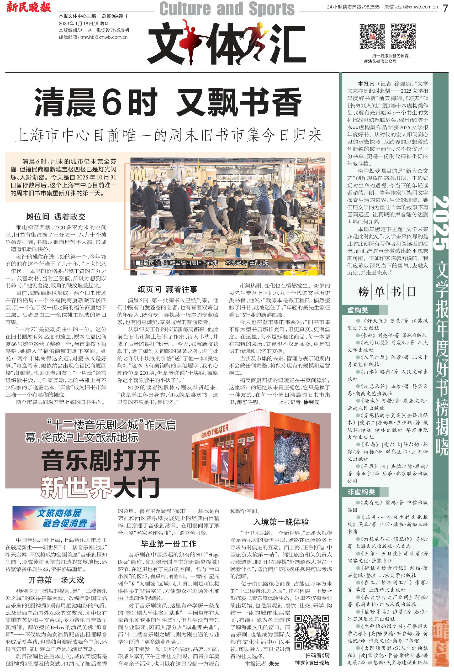 本报讯(记者 徐翌晟)“文学未来亦是此时此刻——2025文学报年度好书榜”前天揭晓。《好天气》《长命》《人间广厦》等十本虚构类作品、《要有光》《暗斗:一个书生的文化抗战》《幻想底尽头:穆旦传》等十本非虚构类作品荣获2025文学报年度好书。从时代的宏大叩问到心灵的幽微探照,从跨界的思想激荡到新锐的破土而出,这不仅仅是一份书单,更是一份时代精神坐标的年度存档。