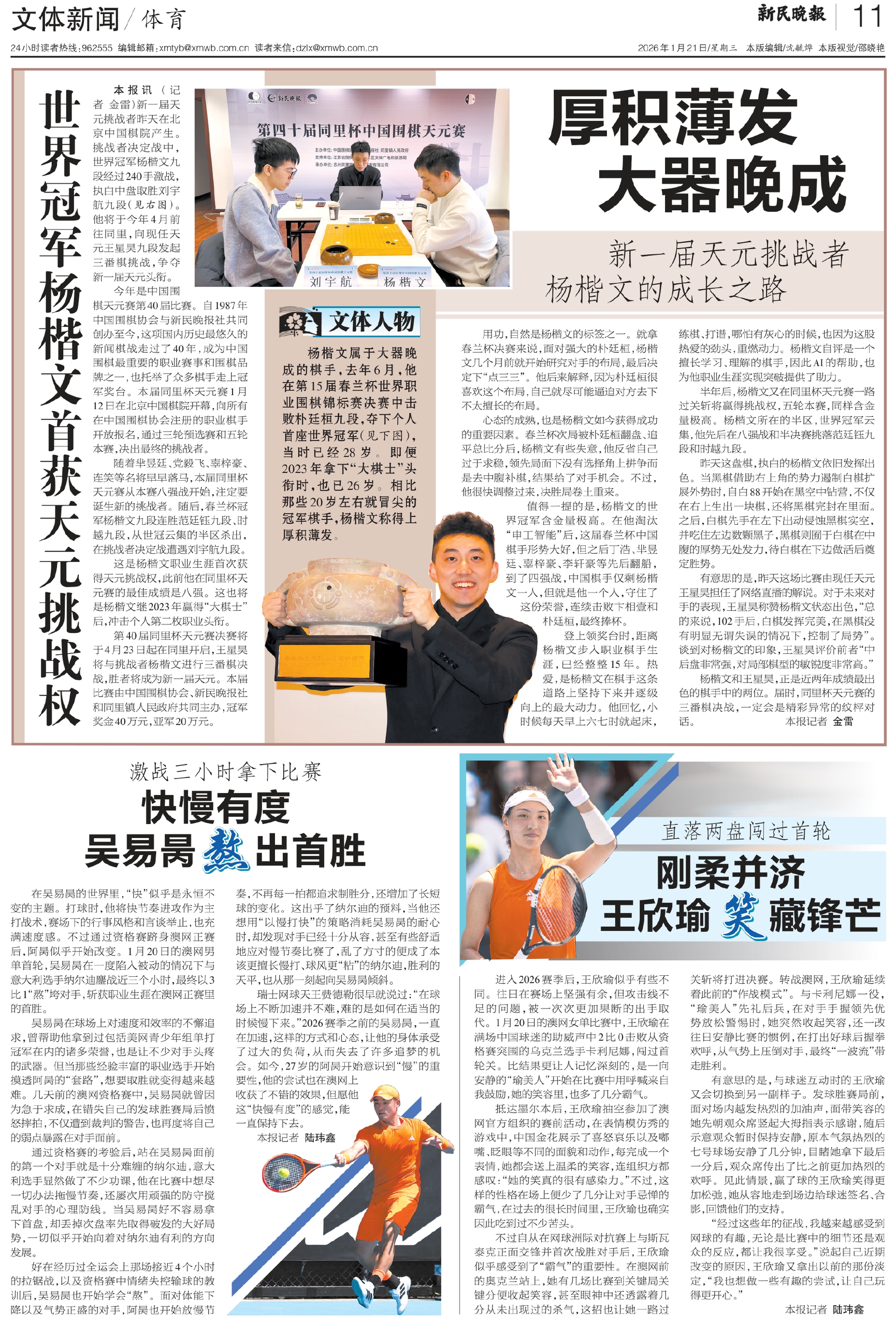 这是杨楷文职业生涯首次获得天元挑战权,此前他在同里杯天元赛的最佳成绩是八强。这也将是杨楷文继2023年赢得“大棋士”后,冲击个人第二枚职业头衔。