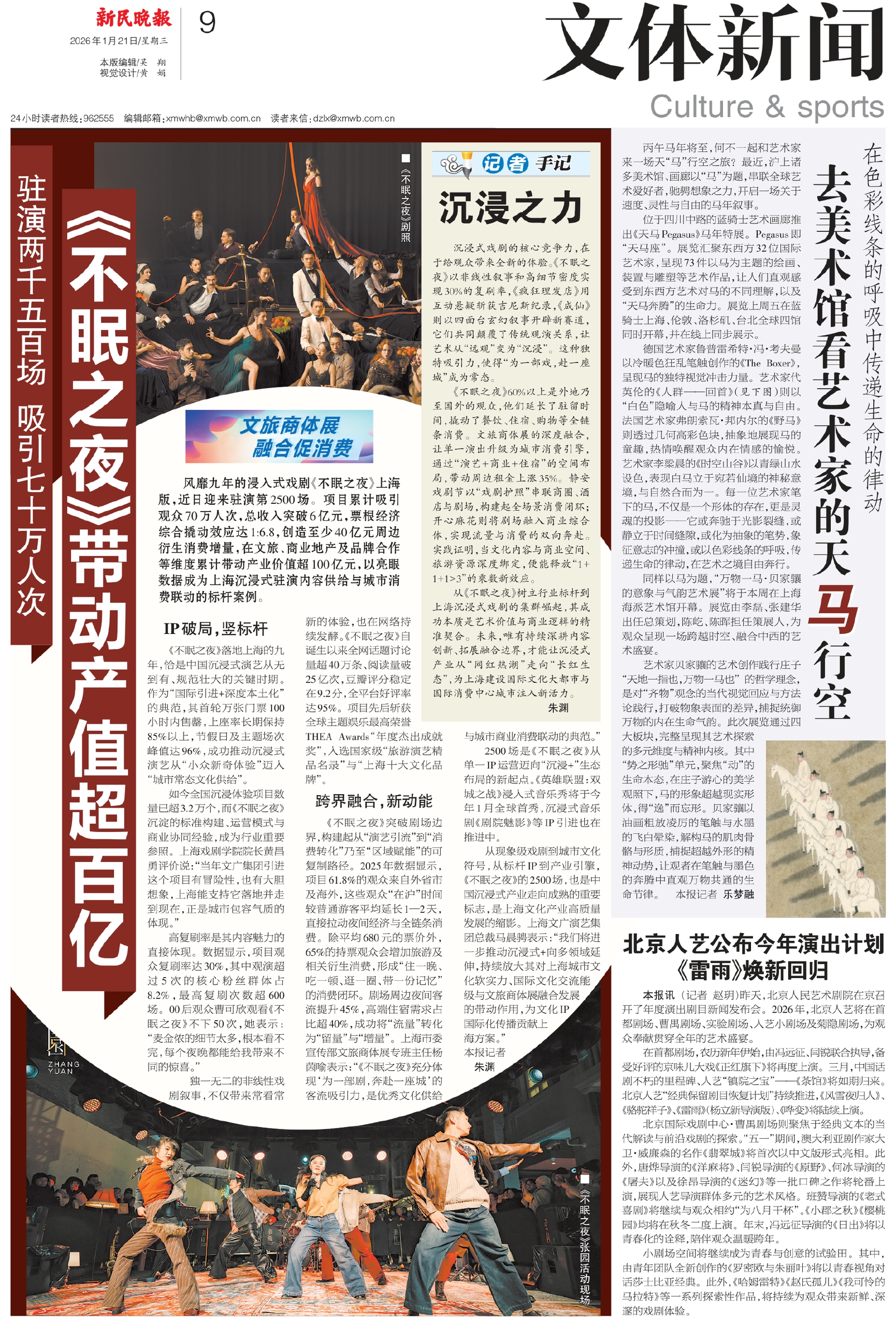 从现象级戏剧到城市文化符号,从标杆IP到产业引擎,《不眠之夜》的2500场,也是中国沉浸式产业走向成熟的重要标志,是上海文化产业高质量发展的缩影。上海文广演艺集团总裁马晨骋表示:“我们将进一步推动沉浸式+向多领域延伸,持续放大其对上海城市文化软实力、国际文化交流能级与文旅商体展融合发展的带动作用,为文化IP国际化传播贡献上海方案。”