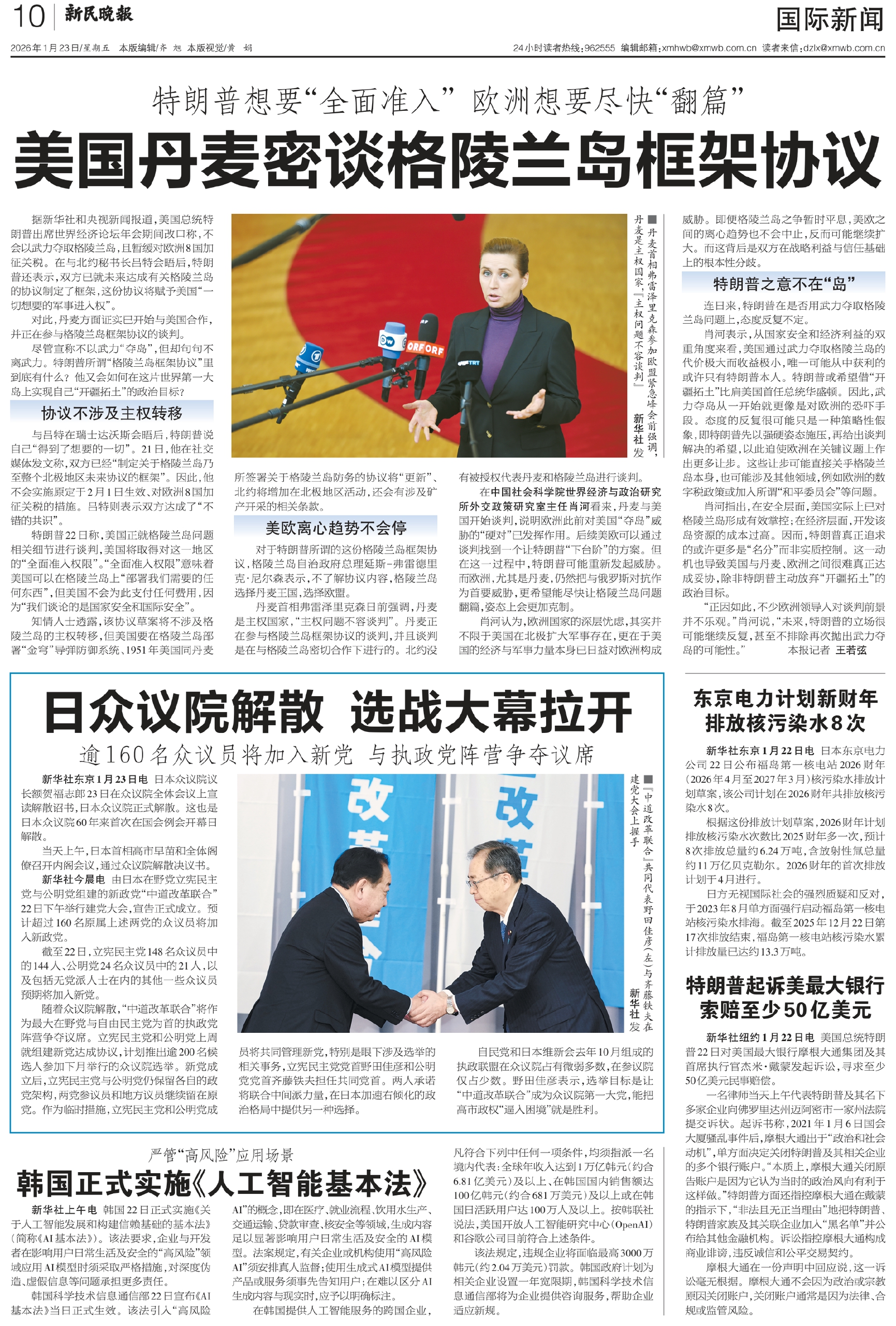 对于特朗普所谓的这份格陵兰岛框架协议,格陵兰岛自治政府总理延斯-弗雷德里克·尼尔森表示,不了解协议内容,格陵兰岛选择丹麦王国,选择欧盟。