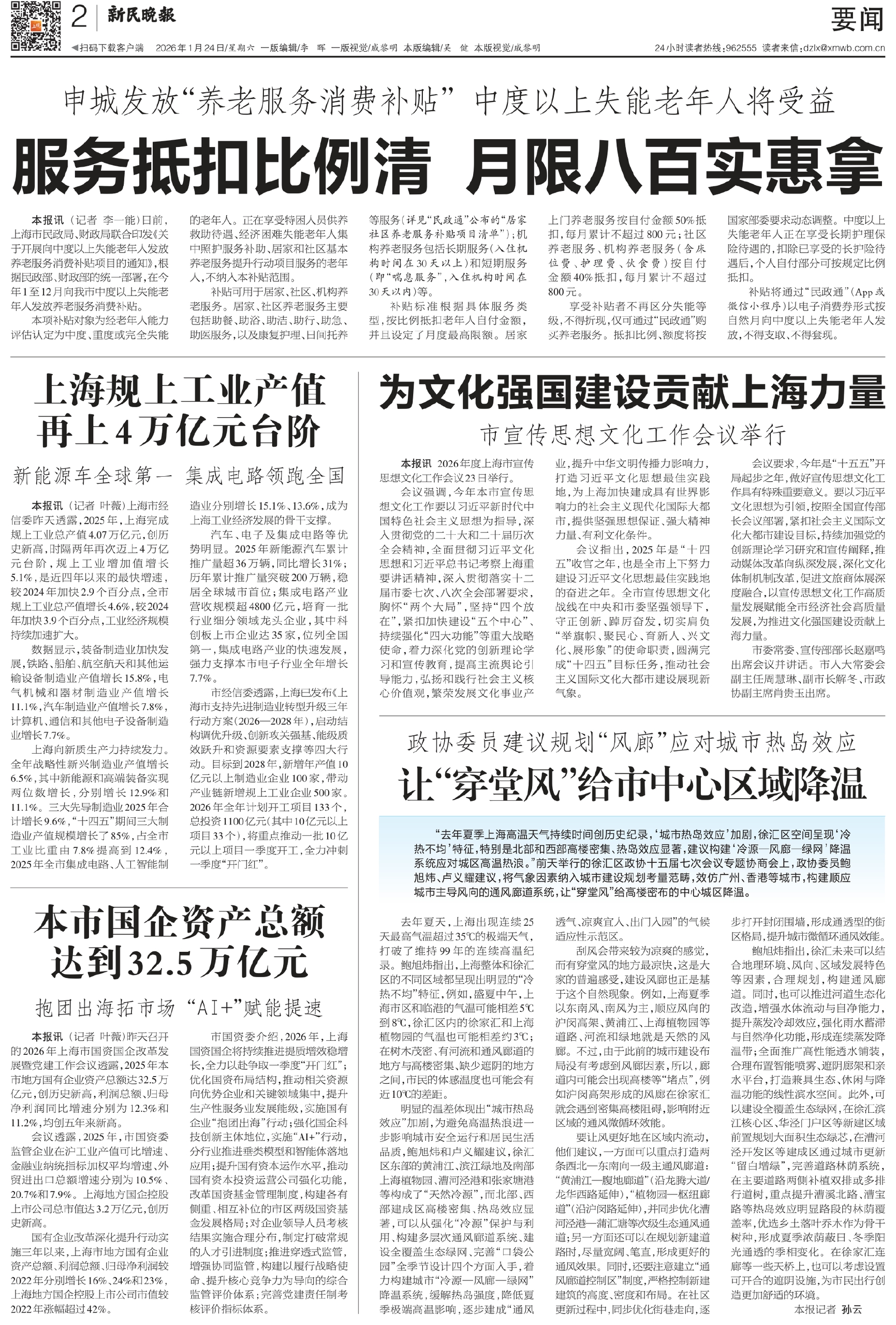 本报讯(记者 李一能)日前,上海市民政局、财政局联合印发《关于开展向中度以上失能老年人发放养老服务消费补贴项目的通知》,根据民政部、财政部的统一部署,在今年1至12月向我市中度以上失能老年人发放养老服务消费补贴。