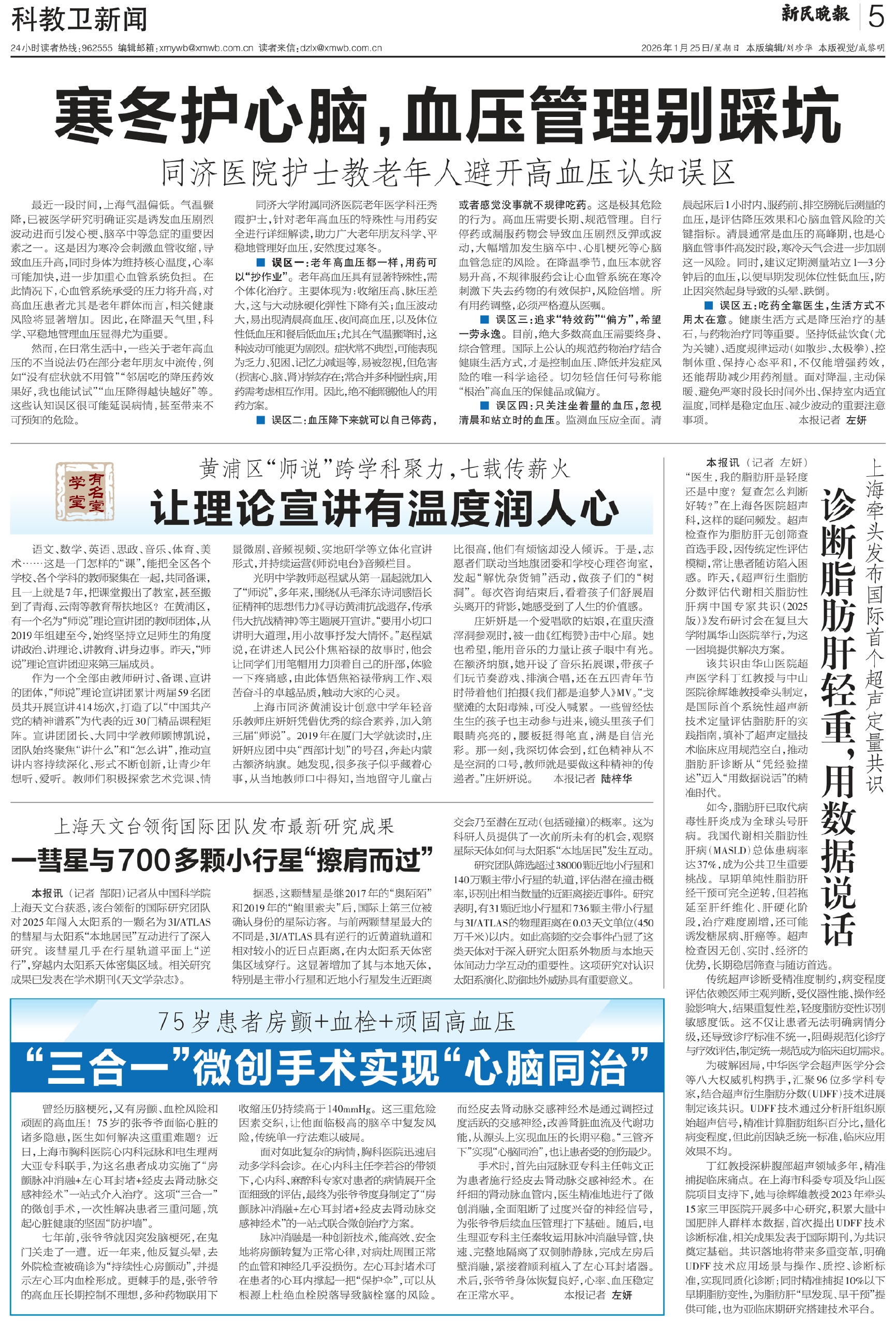 ■ 误区五:吃药全靠医生,生活方式不用太在意。健康生活方式是降压治疗的基石,与药物治疗同等重要。坚持低盐饮食(尤为关键)、适度规律运动(如散步、太极拳)、控制体重、保持心态平和,不仅能增强药效,还能帮助减少用药剂量。面对降温,主动保暖、避免严寒时段长时间外出、保持室内适宜温度,同样是稳定血压、减少波动的重要注意事项。 本报记者 左妍
