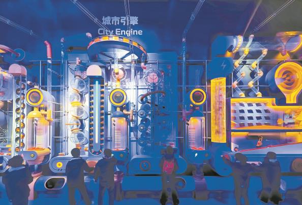 在一米世界展区,孩子们体验城市引擎模型 本报记者 陶磊 摄