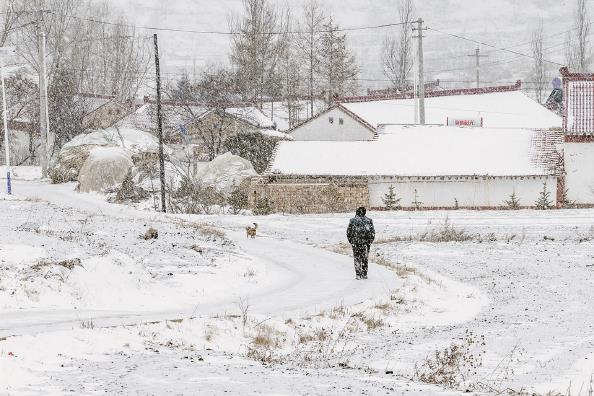 寒风凛冽,大雪纷飞,我持着带有长焦镜头的相机,独自站在宁夏隆德县城郊外的公路旁,想捕捉一点西北农村雪天里的镜头。远处,一个男人匆匆走来,看样子是要走回眼前的这个村庄。突然,一只小狗从村里跑出来,径直跑到男人的跟前,欢蹦乱跳起来。接着,小狗迈着飞快的小碎步在前面引路,往村里而去,男人则冒着漫天的大雪随着小狗向村里走去。小狗是男人家的小狗,男人是小狗家的男人。就在这当口,我按下了快门。