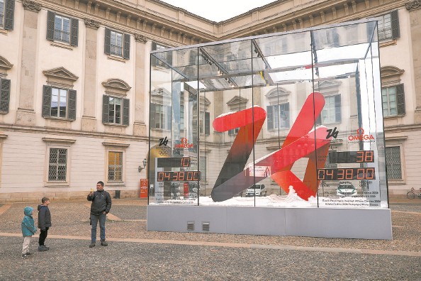 米兰街头的冬奥会倒计时牌 特约记者 钱俊 摄