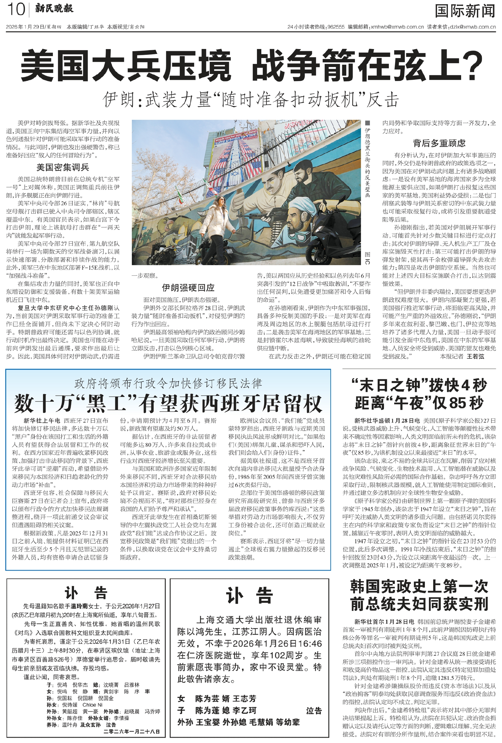 “但伊朗并非委内瑞拉,美国要想更迭伊朗政权难度很大。伊朗内部凝聚力更强,若美国强行推进军事行动,将面临更高风险,并可能产生严重的外溢效应。”孙德刚说,“伊朗多年来在叙利亚、黎巴嫩、也门、伊拉克等地培养了诸多代理人力量,美国一旦动手很可能引发全面中东危机,美国在中东的军事基地、人员安全将受到威胁,美国的盟友也难免受到波及。” 本报记者 王若弦