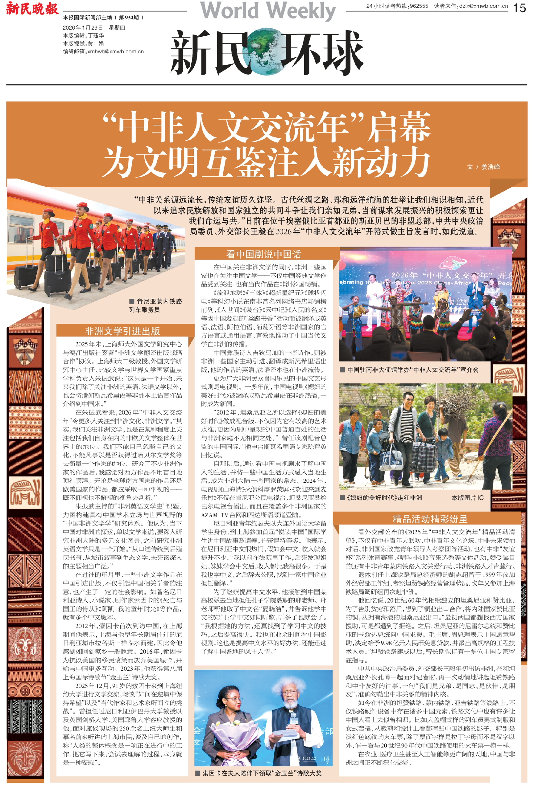 在朱振武看来,2026年“中非人文交流年”令更多人关注到非洲文化、非洲文学。“其实,我们关注非洲文学,也是在某种程度上关注包括我们自身在内的非欧美文学整体在世界上的地位。我们不能自己忽略自己的文化,不能凡事以是否获得过诺贝尔文学奖等去衡量一个作家的地位。研究了不少非洲作家的作品后,我感觉对西方作品不用盲目地顶礼膜拜。无论是全球南方国家的作品还是欧美国家的作品,都应采取一种平视的——既不仰视也不俯视的视角去判断。”