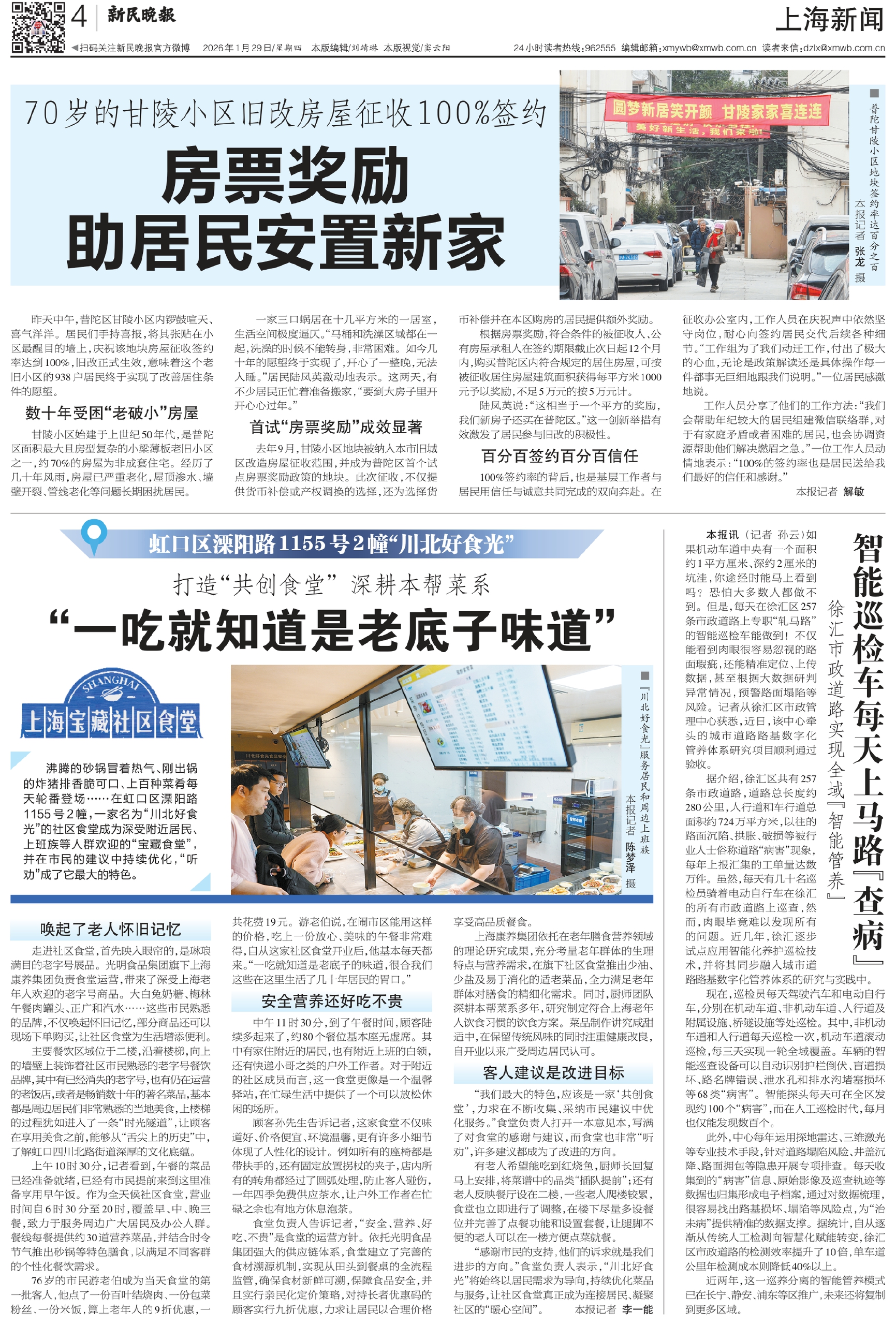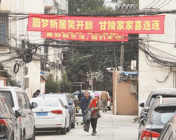 昨天中午,普陀区甘陵小区内锣鼓喧天、喜气洋洋。居民们手持喜报,将其张贴在小区最醒目的墙上,庆祝该地块房屋征收签约率达到100%,旧改正式生效,意味着这个老旧小区的938户居民终于实现了改善居住条件的愿望。