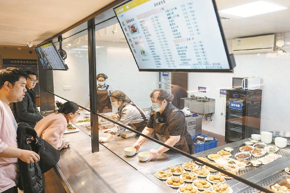 上午10时30分,记者看到,午餐的菜品已经准备就绪,已经有市民提前来到这里准备享用早午饭。作为全天候社区食堂,营业时间自6时30分至20时,覆盖早、中、晚三餐,致力于服务周边广大居民及办公人群。餐线每餐提供约30道营养菜品,并结合时令节气推出砂锅等特色膳食,以满足不同客群的个性化餐饮需求。