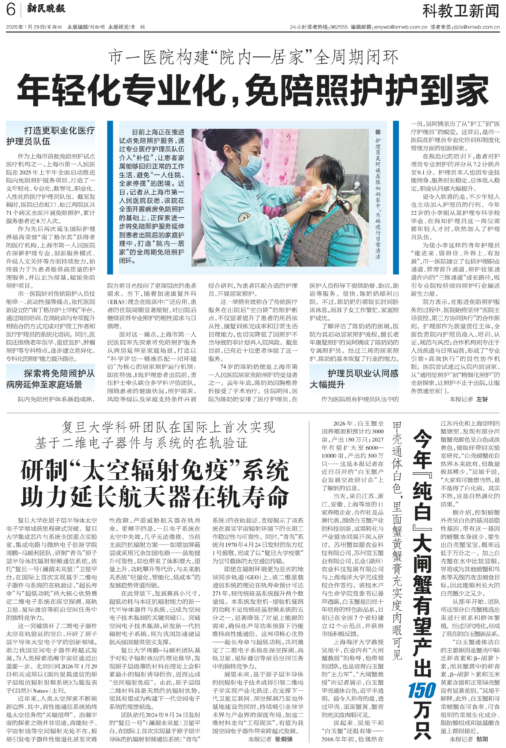 目前上海正在推进试点免陪照护服务,通过专业医疗护理员队伍介入“补位”,让患者家属能够回归正常的工作生活,避免“一人住院、全家停摆”的困境。近日,记者从上海市第一人民医院获悉,该院在全面开展病房免陪照护的基础上,正探索进一步将免陪照护服务延伸到患者出院后的家庭护理中,打造“院内—居家”的全周期免陪照护闭环。