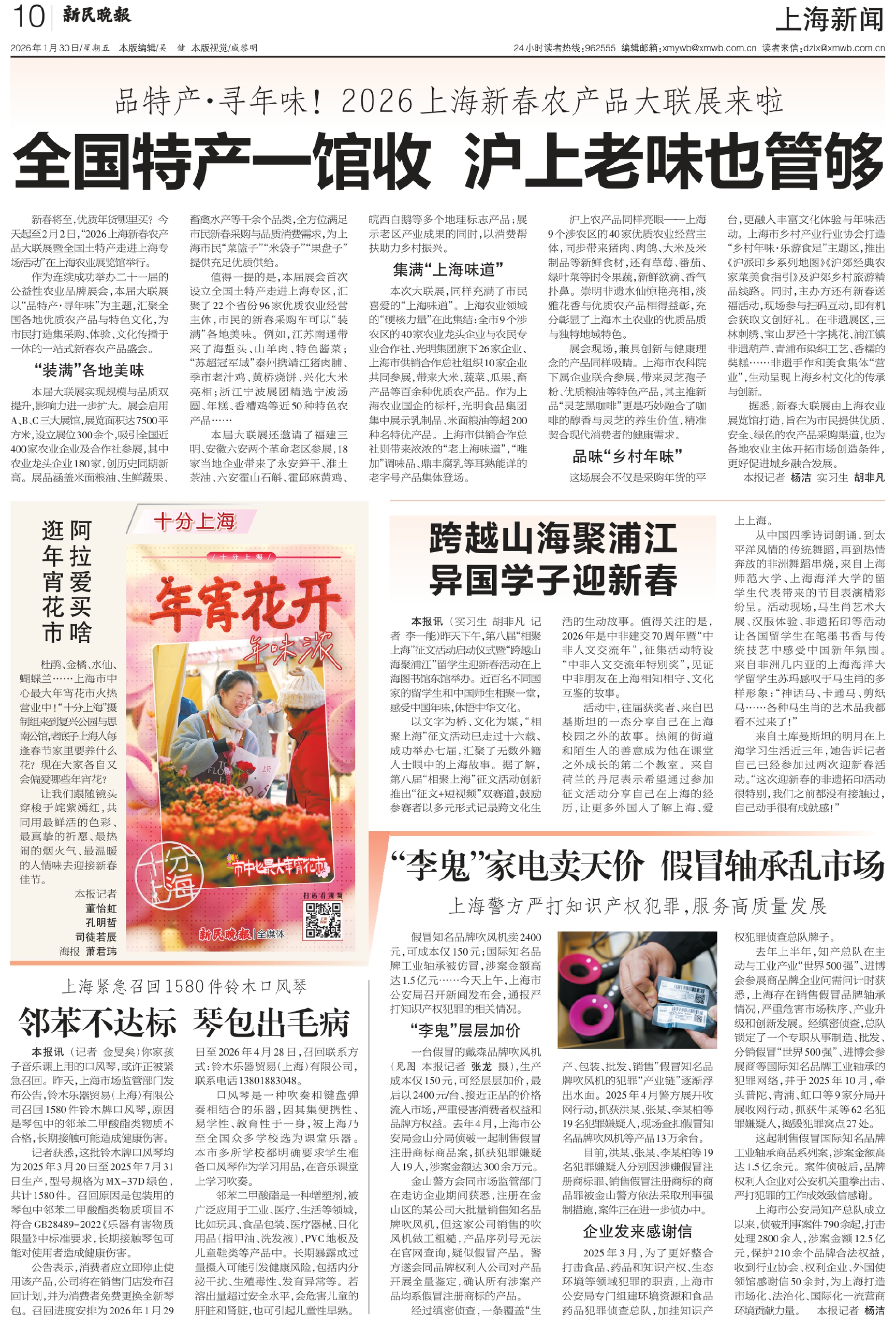 新春将至,优质年货哪里买?今天起至2月2日,“2026上海新春农产品大联展暨全国土特产走进上海专场活动”在上海农业展览馆举行。