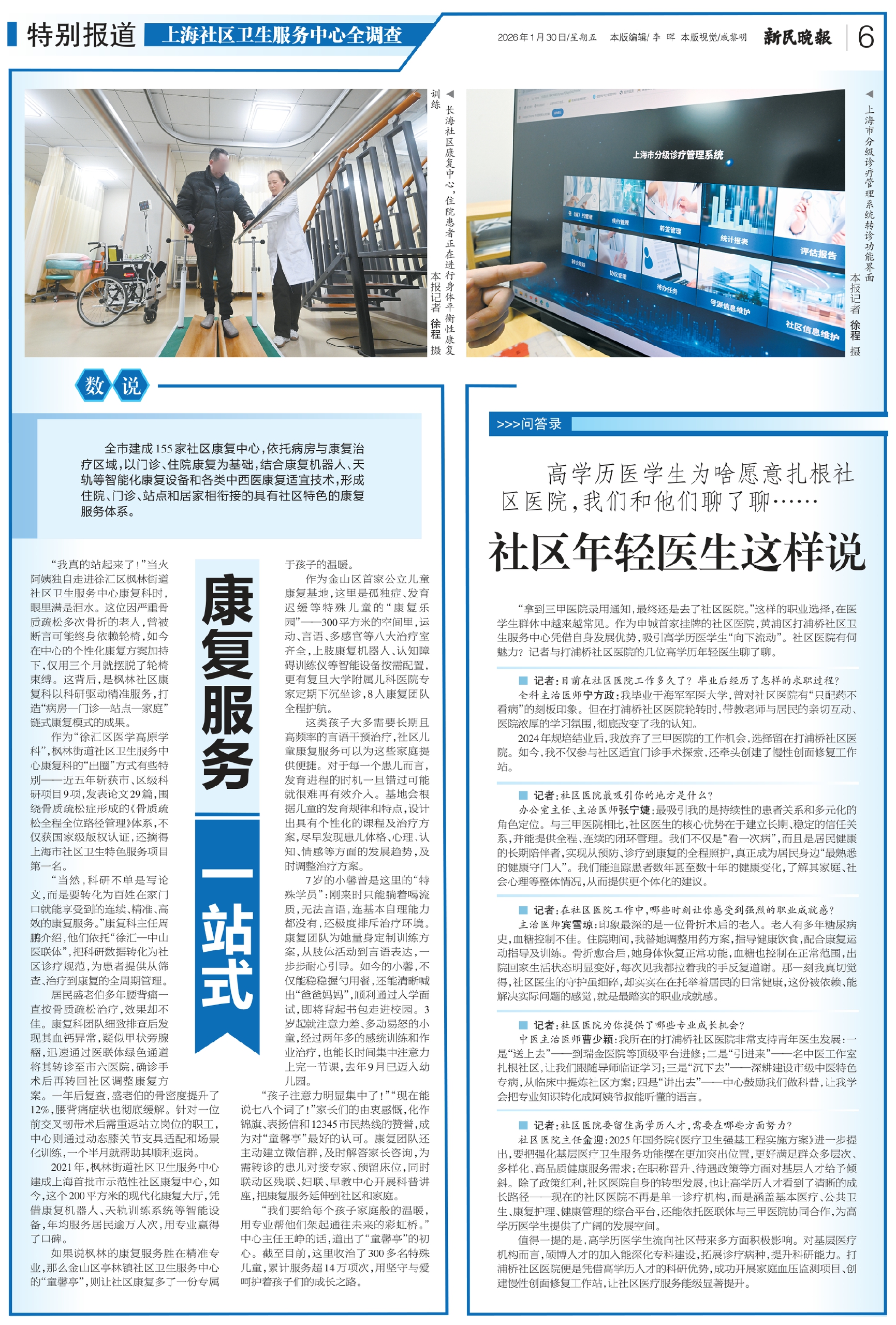 “当然,科研不单是写论文,而是要转化为百姓在家门口就能享受到的连续、精准、高效的康复服务。”康复科主任周鹏介绍,他们依托“徐汇—中山医联体”,把科研数据转化为社区诊疗规范,为患者提供从筛查、治疗到康复的全周期管理。