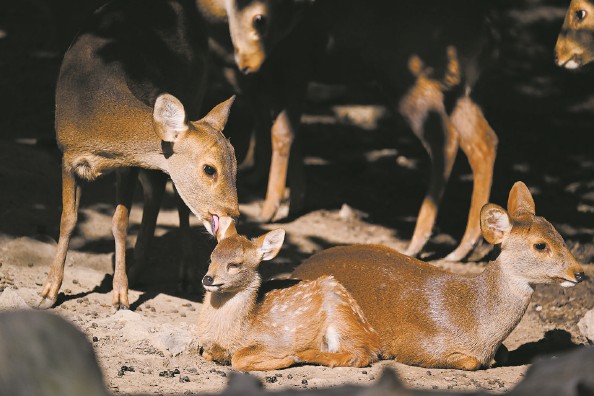 豚鹿在我国的原生栖息地是云南西南部低海拔河谷。作为鹿科动物中的濒危物种之一,20世纪60年代,豚鹿在我国野外绝迹(局域绝灭),堪称鹿科动物中的“大熊猫”。目前,国内仅有上海、成都两家动物园保有稳定的人工繁育种群,总数不到200只,两家动物园也因此成为守护这一物种最重要的“保育大本营”。