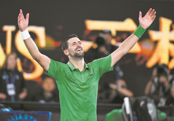 1月30日,在阿尔卡拉斯和兹维列夫激战5小时27分钟后,38岁的德约和24岁的辛纳走上了罗德·拉沃尔球场,用一场4小时12分钟的五盘大战,为这个疯狂的比赛日画上句号。而最后站在球场中央笑着感受胜利者欢呼的,是3比2击败辛纳,第11次晋级澳网决赛的德约科维奇。