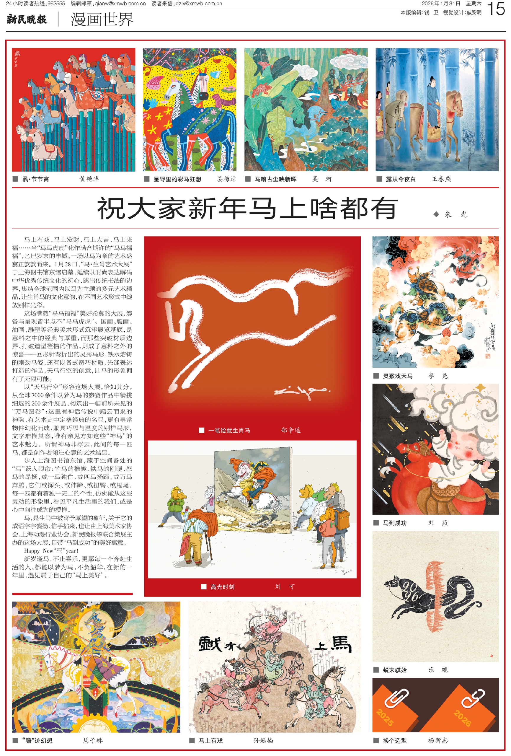 马,是生肖中被寄予厚望的象征,关于它的成语字字褒扬、信手拈来,也让由上海美术家协会、上海动漫行业协会、新民晚报等联合策展主办的这场大展,自带“马到成功”的美好寓意。