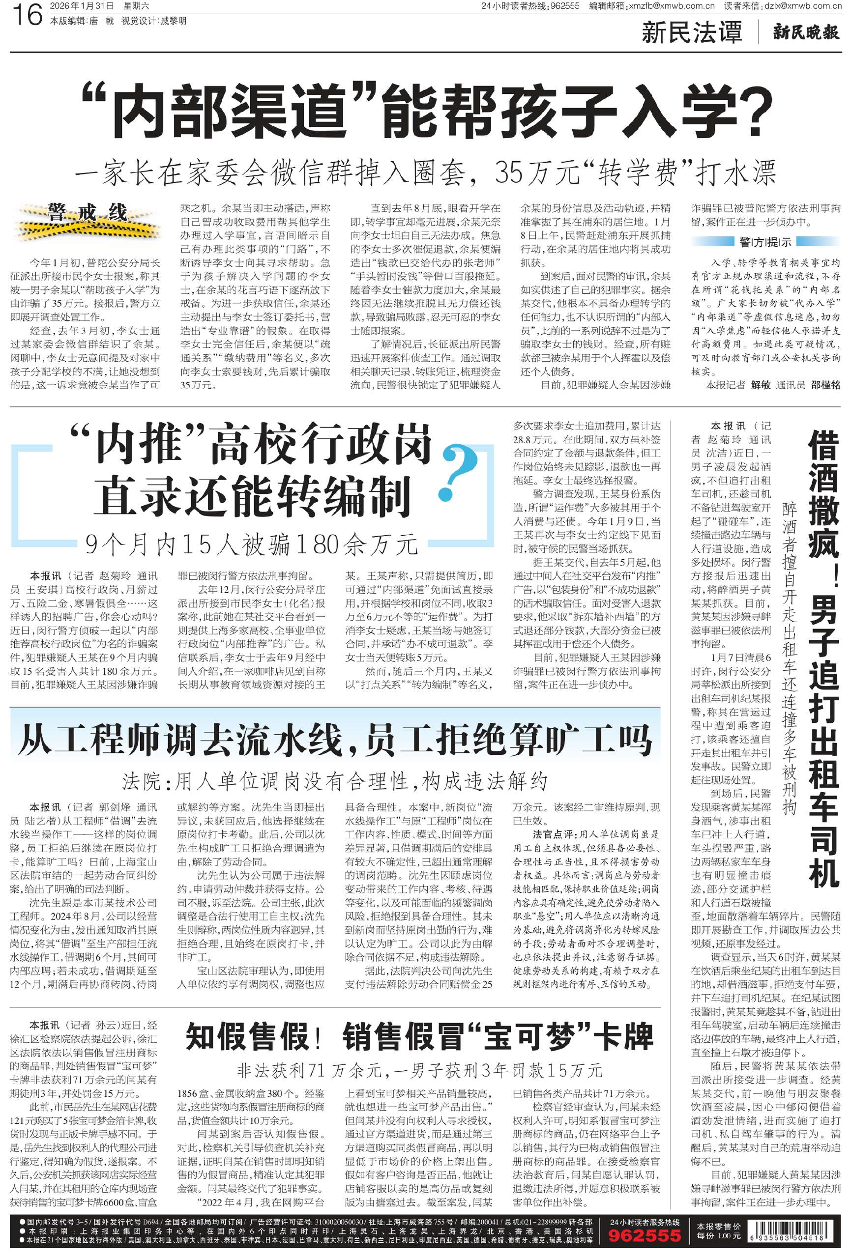 入学、转学等教育相关事宜均有官方正规办理渠道和流程,不存在所谓“花钱托关系”的“内部名额”。广大家长切勿被“代办入学”“内部渠道”等虚假信息迷惑,切勿因“入学焦虑”而轻信他人承诺并支付高额费用。如遇此类可疑情况,可及时向教育部门或公安机关咨询核实。