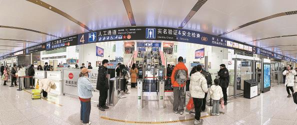 随后,记者又来到南进厅,改造后这里比以前宽敞多了,今天早上客流并不是很大,所以旅客排队时间很短,部分通道甚至不需要排队;旅客可选择人工通道,也可选择人脸识别的自动通道进站。据介绍,上海站南进站口进站和安检通道较此前增加了70%,站内便捷换乘通道也大幅扩容,整体服务承载能力显著提升,可有效应对即将到来的春运客流高峰。