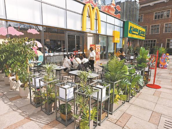为鼓励“外摆经济”发展,黄浦区即将出台的《外摆位实施意见》新规首次对空间范围、准入主体、经营时间进行了适度放开。 麦当劳华旭国际大厦店餐厅店外(沿西藏中路一侧)新增近100平方米、24小时不打烊的外摆区域。在寸土寸金的人民广场区域,对商户来说,外摆位的扩容,不仅是营业面积的延伸,更是门店的“流量入口”。 本报记者 刘歆 摄影报道