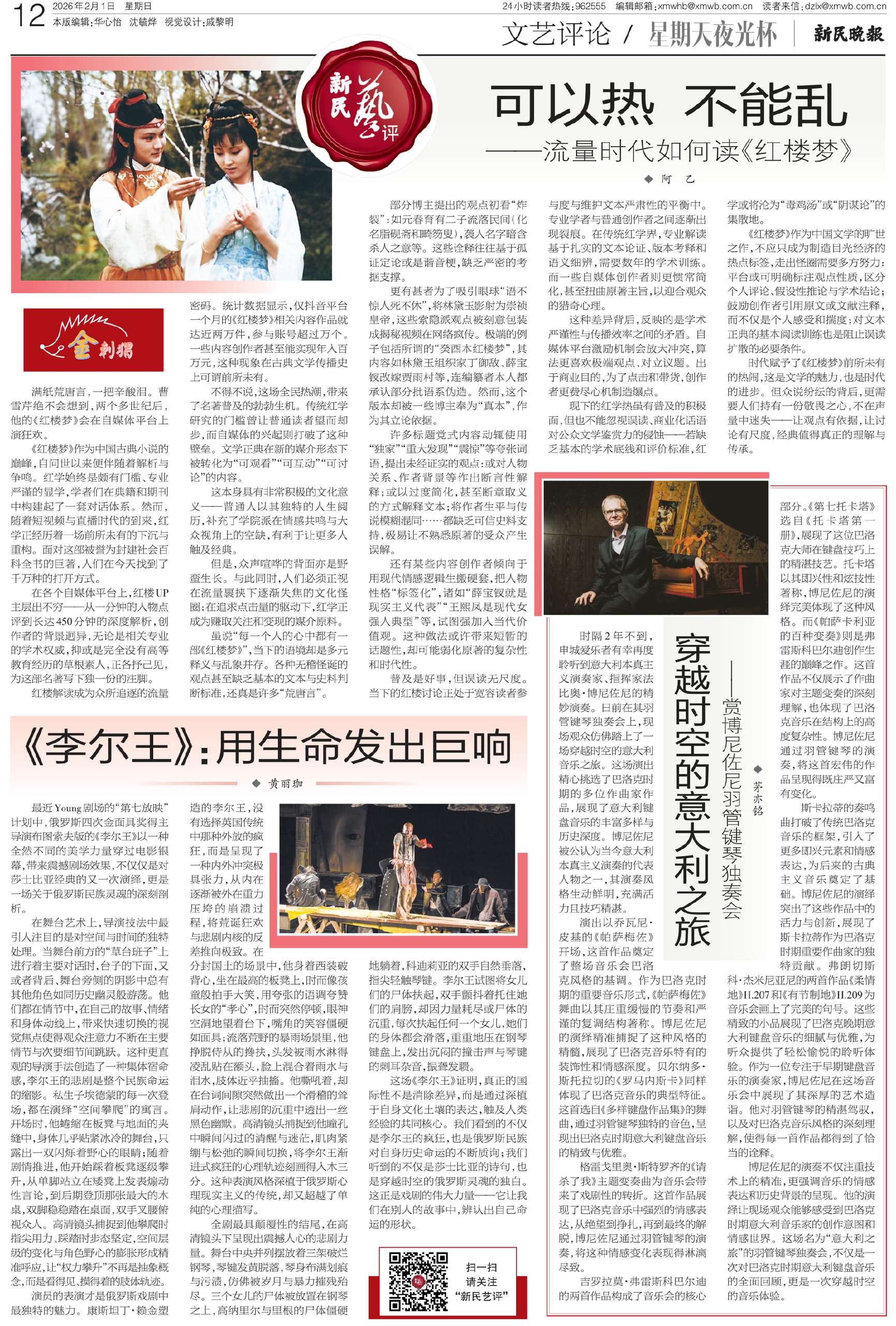 时代赋予了《红楼梦》前所未有的热闹,这是文学的魅力,也是时代的进步。但众说纷纭的背后,更需要人们持有一份敬畏之心,不在声量中迷失——让观点有依据,让讨论有尺度,经典值得真正的理解与传承。