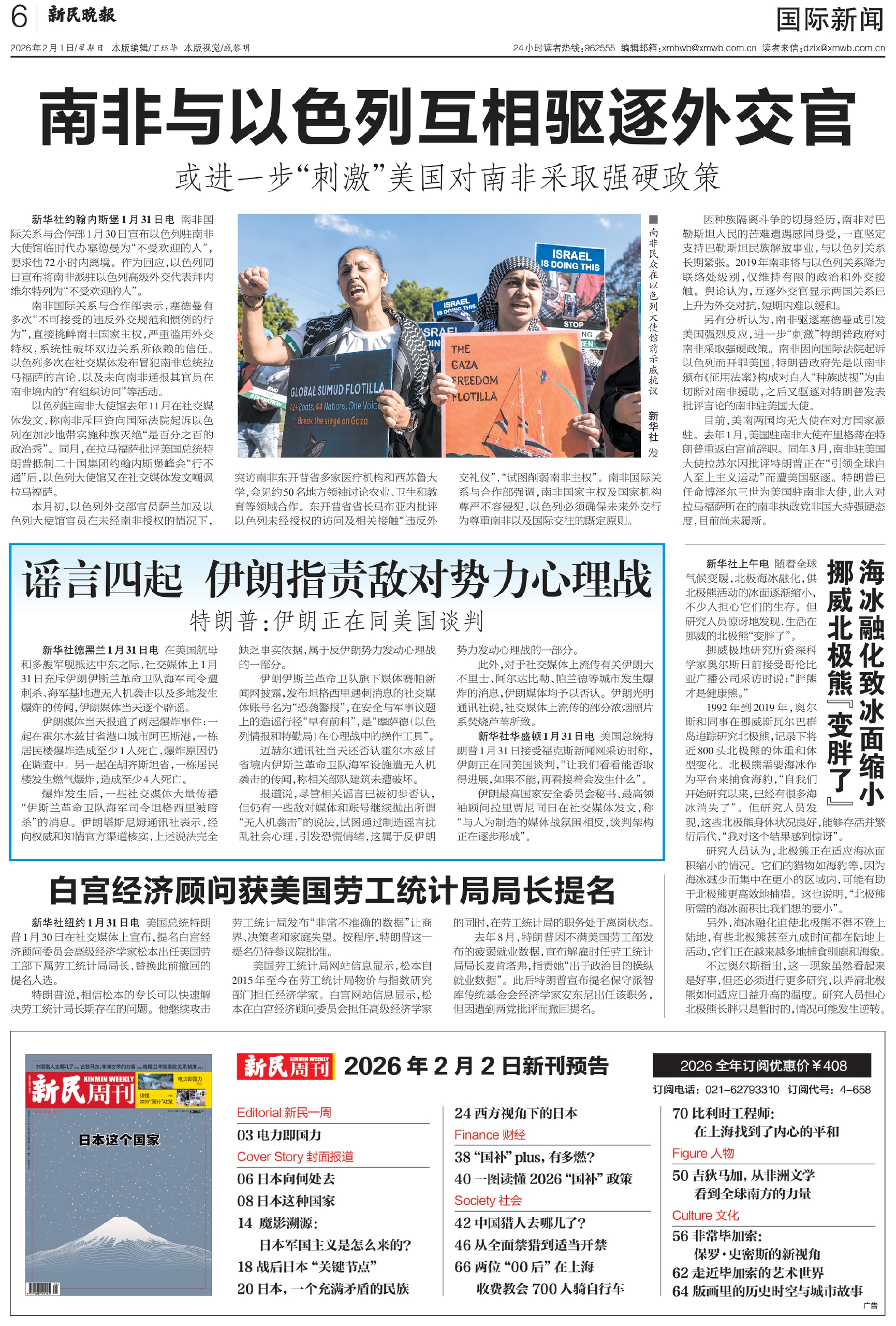 新华社约翰内斯堡1月31日电 南非国际关系与合作部1月30日宣布以色列驻南非大使馆临时代办塞德曼为“不受欢迎的人”,要求他72小时内离境。作为回应,以色列同日宣布将南非派驻以色列高级外交代表拜内维尔特列为“不受欢迎的人”。