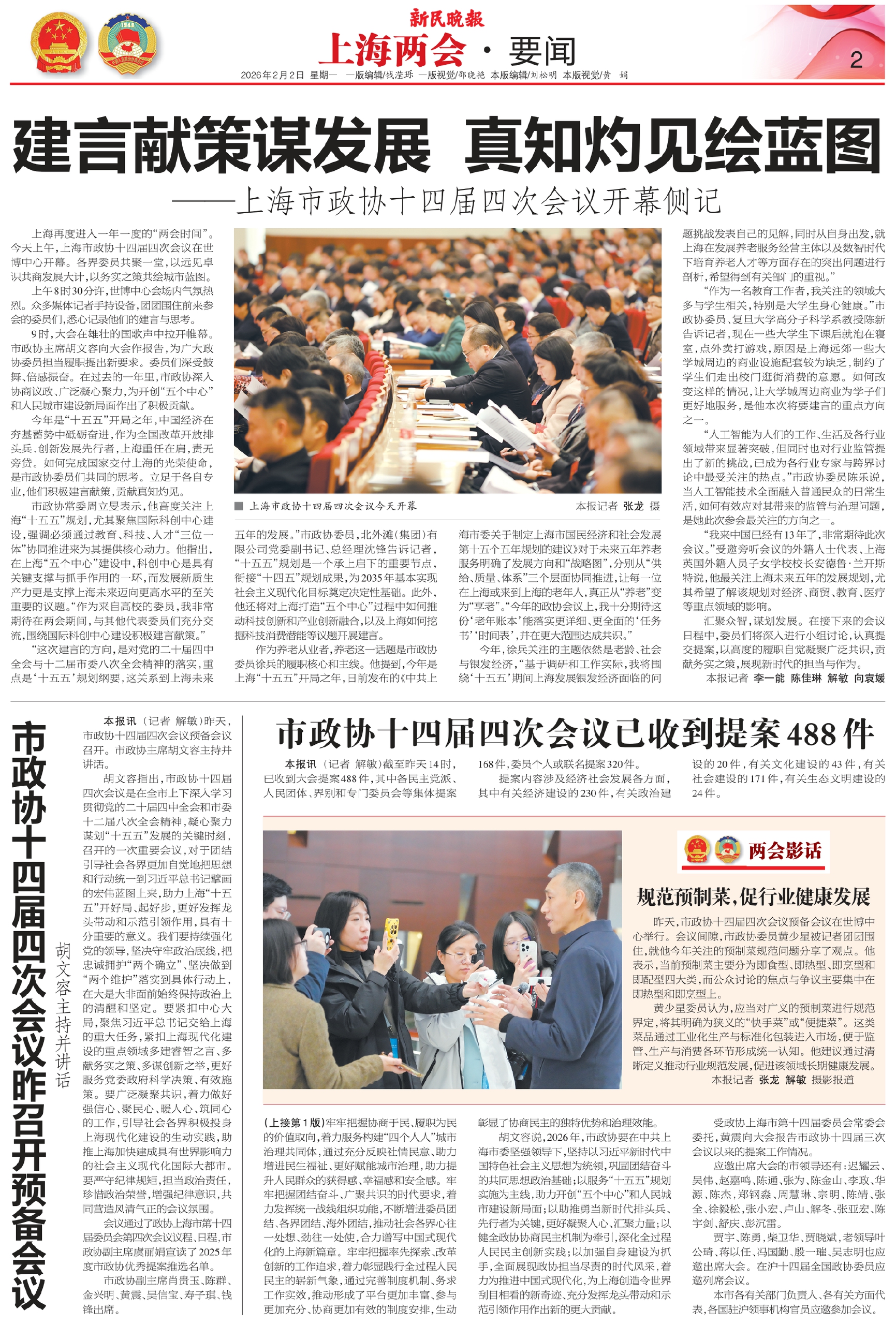 上海再度进入一年一度的“两会时间”。今天上午,上海市政协十四届四次会议在世博中心开幕。各界委员共聚一堂,以远见卓识共商发展大计,以务实之策共绘城市蓝图。