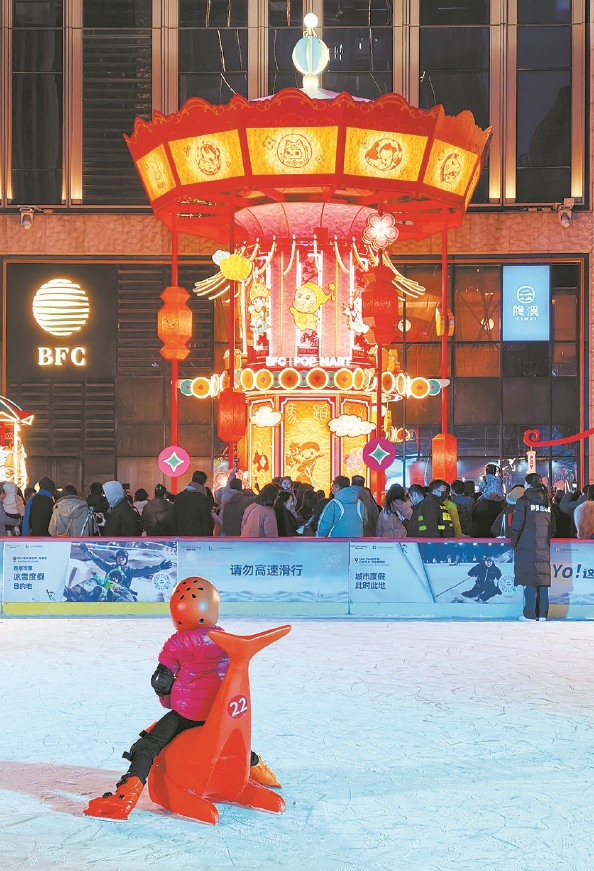 BFC周边行道树被暖色灯串缠绕,化作外滩“星光大道”,复星艺术中心外墙跃动音乐节拍,构筑出声光交融的浪漫之境。南区“天马行空 外滩有戏”戏台以城门意象与宫殿屋檐为主体,打造可走入的时空剧场;B2层“请回答·外滩1990”复古街区复刻上世纪八九十年代场景,“拍洋画”“跳房子”游戏唤醒童年记忆;开运天马祈福坊重现古代小坊市,投壶、套圈等打造年味打卡地。复星艺术中心二层的“‘纹’以载道”故宫博物院沉浸式数字体验展,让故宫经典纹样与当代艺术在数字空间对话,解锁传统文化新玩法。