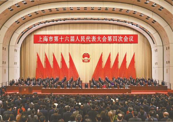 上海市第十六届人民代表大会第四次会议今天上午在上海世博中心开幕 本报记者 刘歆 摄