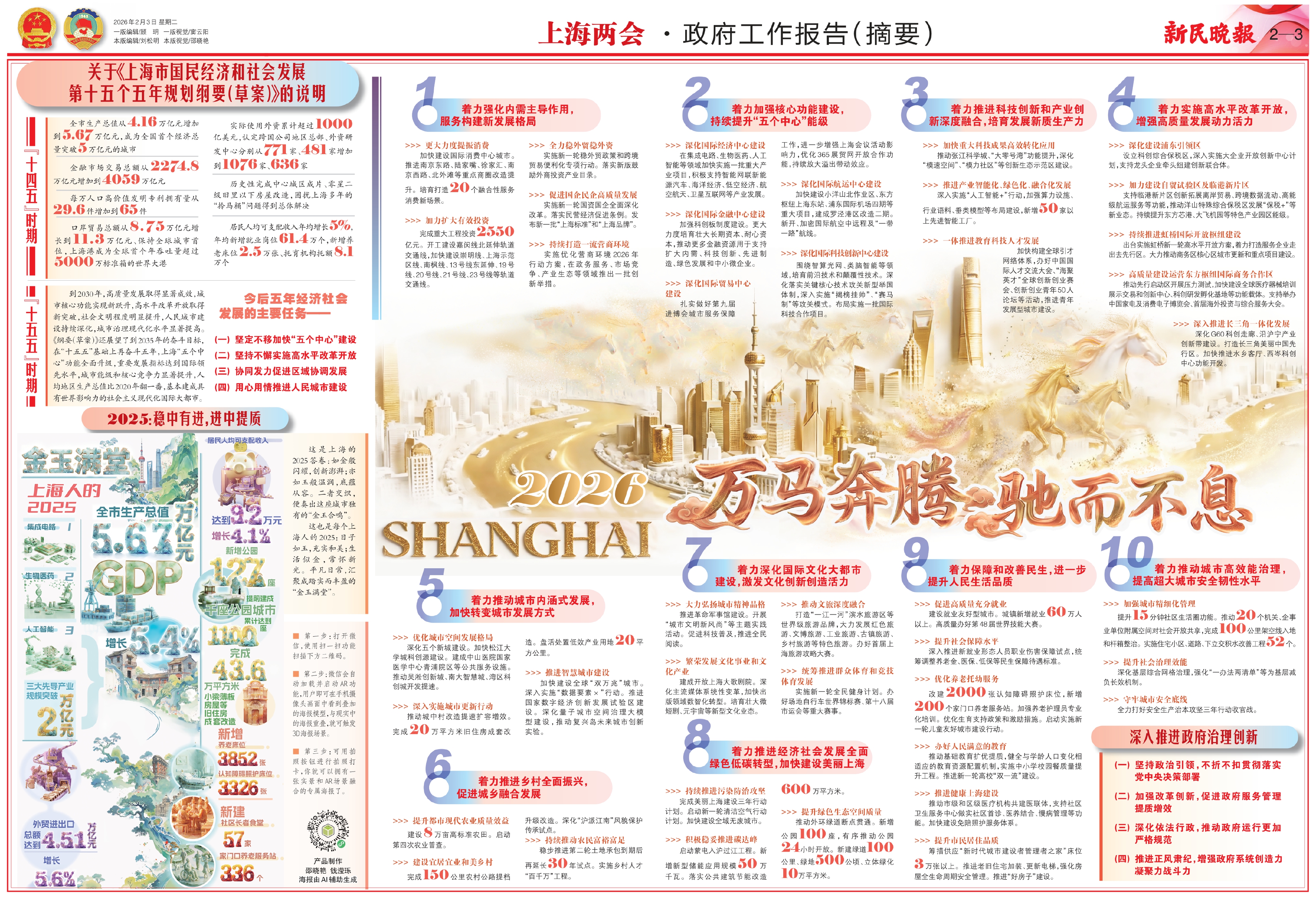 到2030年,高质量发展取得显著成效,城市核心功能实现新跃升,高水平改革开放取得新突破,社会文明程度明显提升,人民城市建设持续深化,城市治理现代化水平显著提高。《纲要(草案)》还展望了到2035年的奋斗目标,在“十五五”基础上再奋斗五年,上海“五个中心”功能全面升级,重要发展指标达到国际领先水平,城市能级和核心竞争力显著提升,人均地区生产总值比2020年翻一番,基本建成具有世界影响力的社会主义现代化国际大都市。