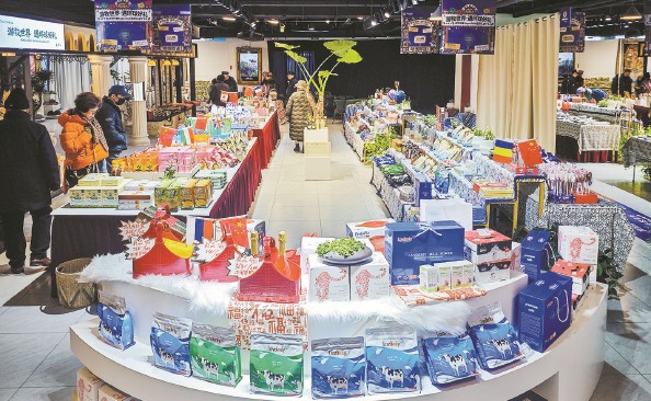 近日,进博市集年货节在上海环球港启幕。这次活动以“游牧世界,遇环球好礼”为主题,将持续至3月9日。市集将来自世界30多个国家和地区的数千款进口商品“搬”到消费者家门口,丰富大家节日期间的年货选择。走进活动现场,仿佛置身于一个微缩的“地球村”,法国的红酒、新西兰奶粉、阿根廷红虾等各国特色产品琳琅满目,市民足不出“沪”就能把这些进口年货带回家。 本报记者 陶磊 摄影报道