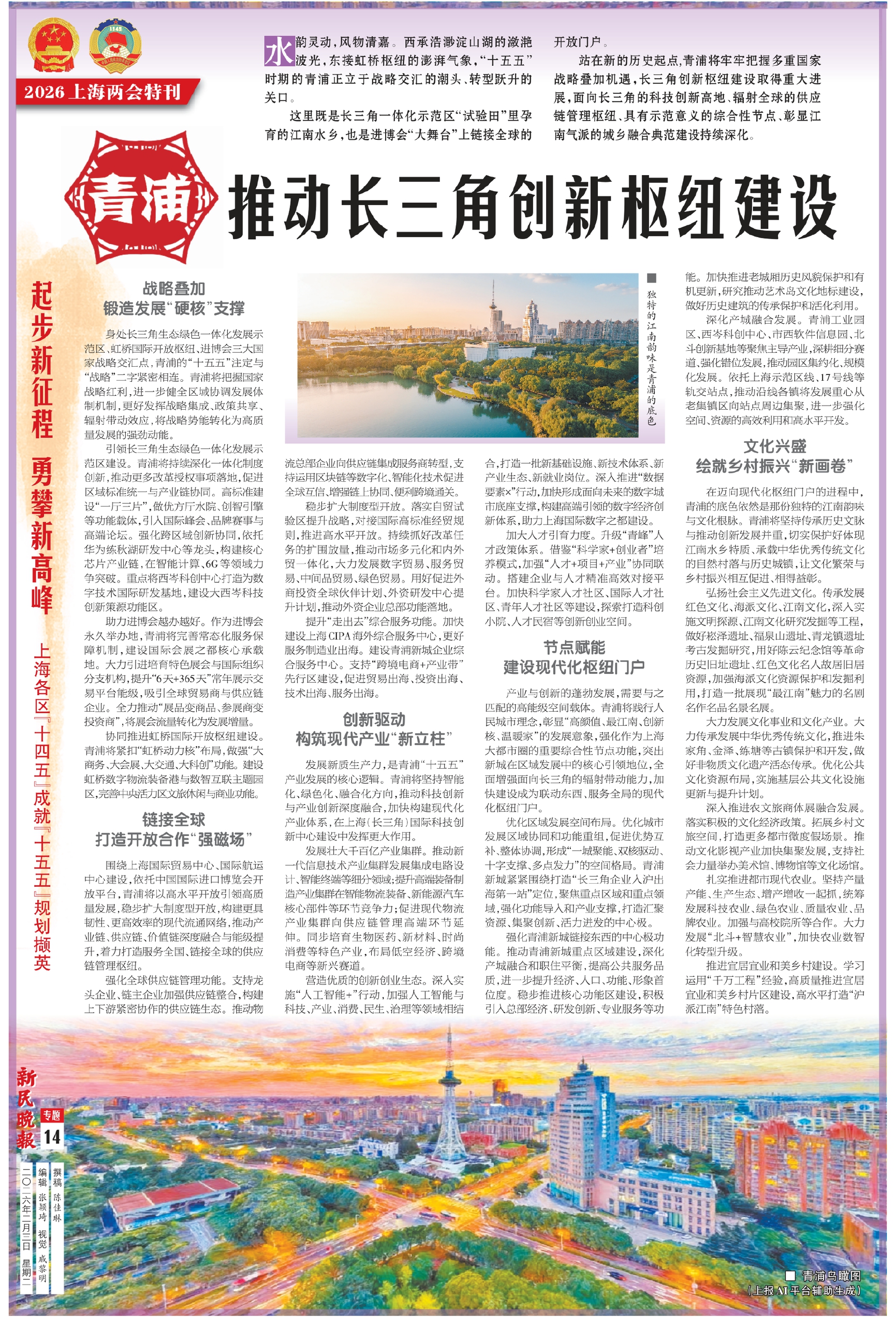 水韵灵动,风物清嘉。西承浩渺淀山湖的潋滟波光,东接虹桥枢纽的澎湃气象,“十五五”时期的青浦正立于战略交汇的潮头、转型跃升的关口。
