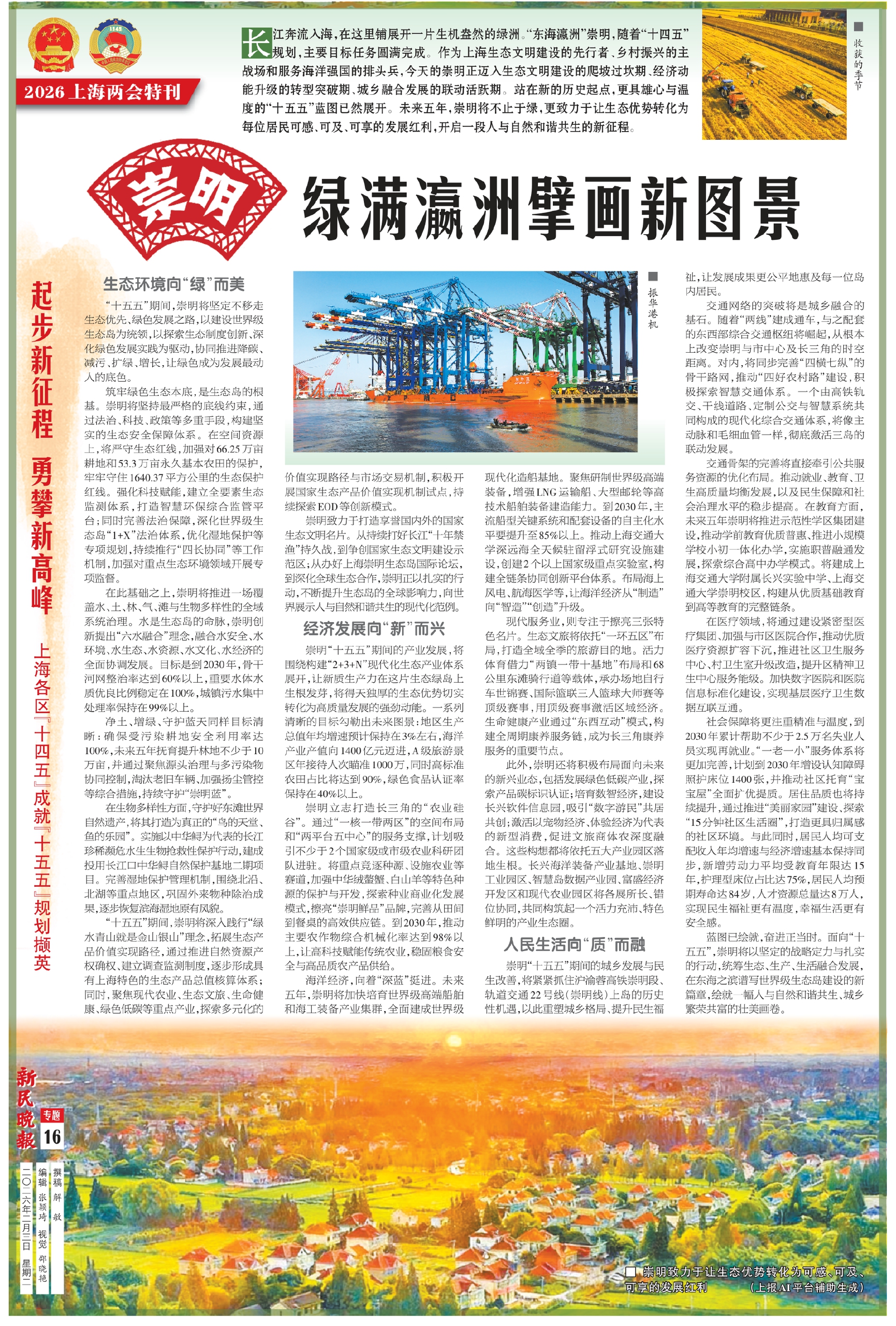 蓝图已绘就,奋进正当时。面向“十五五”,崇明将以坚定的战略定力与扎实的行动,统筹生态、生产、生活融合发展,在东海之滨谱写世界级生态岛建设的新篇章,绘就一幅人与自然和谐共生、城乡繁荣共富的壮美画卷。
