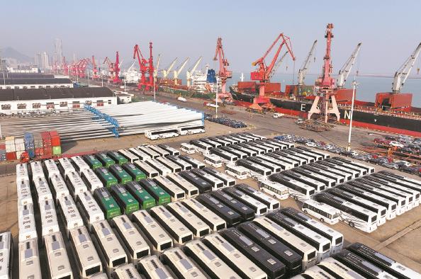图为在江苏省连云港港东方港务分公司码头,大批车辆集港等待装船外运