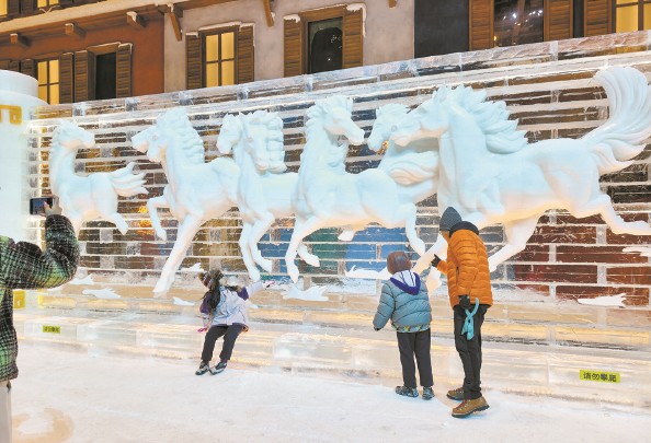 全球首座《八骏图》巨型冰雕 本报记者 周馨 摄