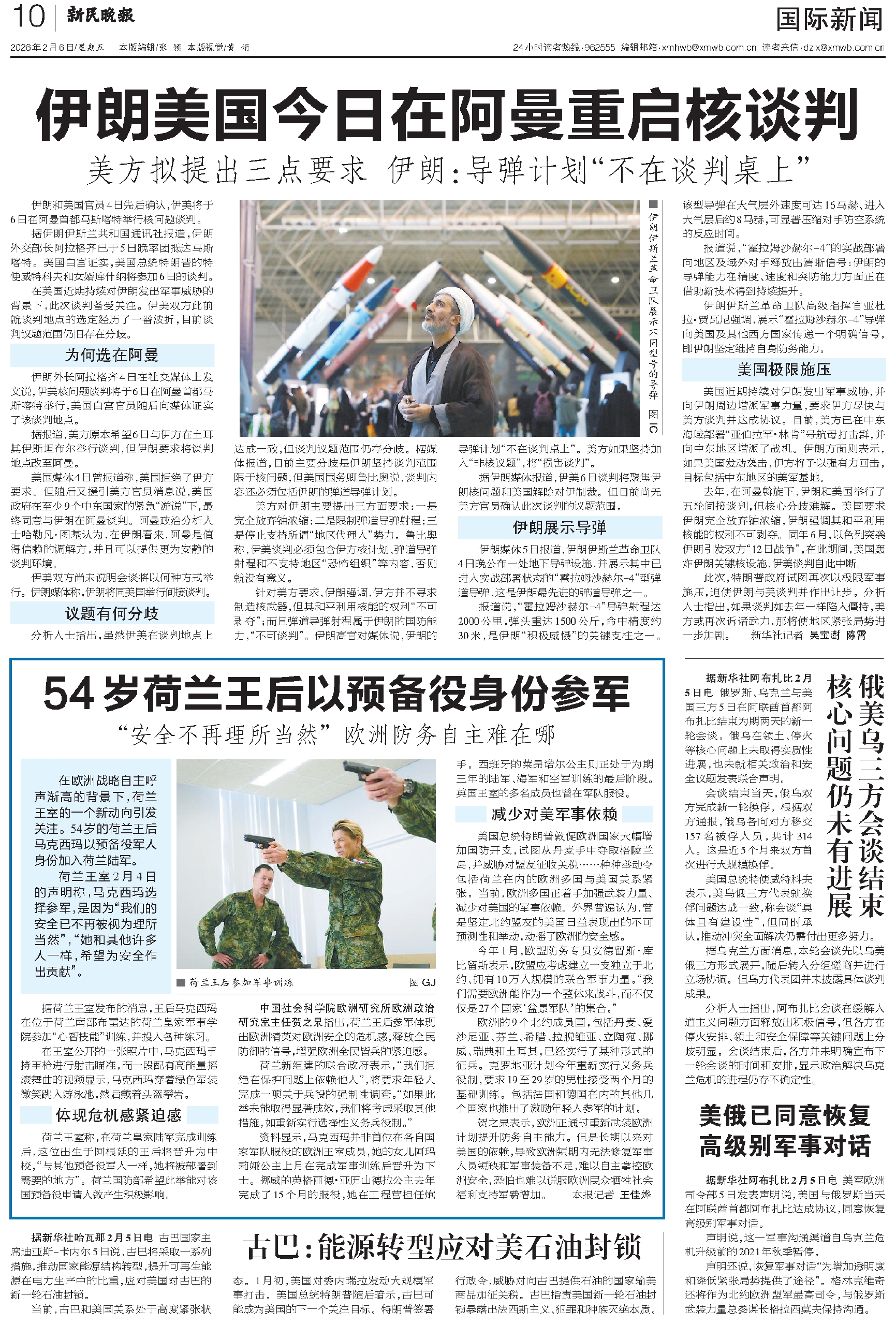 据伊朗媒体报道,伊美6日谈判将聚焦伊朗核问题和美国解除对伊制裁。但目前尚无美方官员确认此次谈判的议题范围。