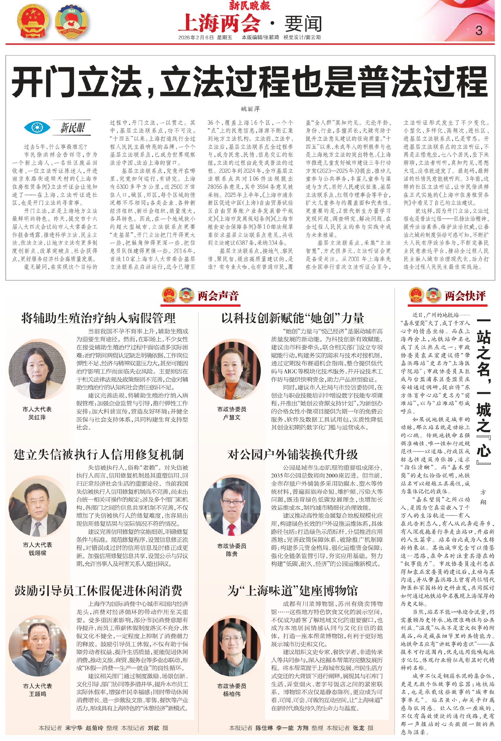 就这样,因为开门立法,立法过程也是普法过程——弘扬法治精神、提升法治素养、维护法治权威,让善治之城的制度供给可感可知,不断扩大人民有序政治参与,不断完善民主民意表达平台,推动全过程人民民主融入城市治理现代化,助力打造全过程人民民主最佳实践地。